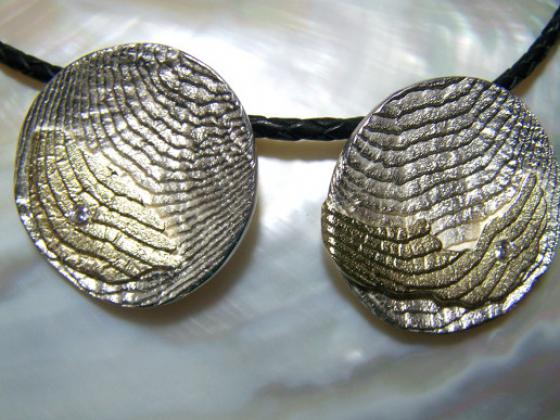 aus Mutters kleinen Brillantringen: auch ein wenig Altgold und 2 Brillianten reichten hier aus, zwei schöne Sepia- Anhänger für Schwestern zu fertigen...