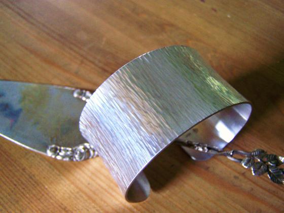 Auch so kann "Besteck-Schmuck" aussehen... dieser Armreif besteht aus 2 Zuckerzangen, 1 Sahnelöffel und 1 Gebäckgabel aus 800er Silber, der Tortenheber wurde vor dem Einschmelzen verschont...
