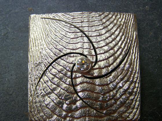 Brosche aus Silber im Sepiaguss und ein kleiner Zirkonia blitzt aus der Mitte hervor...