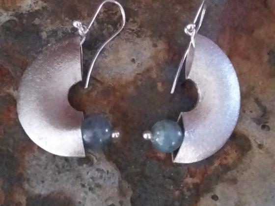 Ohrhänger aus halbem Silber-Donut mit je einem hellblauen Dysthen...