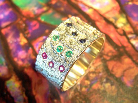 dieser wunderbare Ring aus Gold 585 im Sepiaguss mit Rubin, Safir, Smaragd wurde komplett aus Kunden-Erbschmuck gearbeitet...