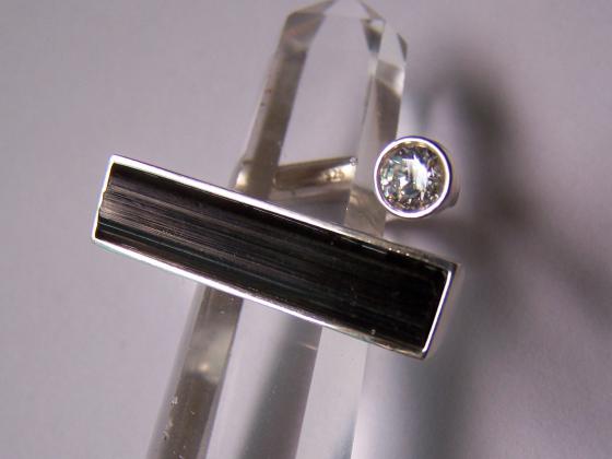 Silberring mit einem schwarzen Turmalin-Kristall wie gewachsen und ein Zirkonia für den "Bling-bling..."