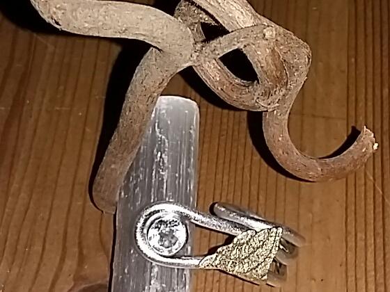 Ein Stück abgesägter Blauregen-Stiel veranlasste den Gold- und Silberschmied diesen kunstvollen Ring zu fertigen... Silber, Gold und großer Zirkonia wurden hier zu einem Kunst-(Schmuck-)stück vereint...