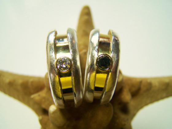 Kundenanfertigung... massives Feinsilber mit Gold-Inlet 585 sowie einem schwarzen und einem weißen Brillanten...