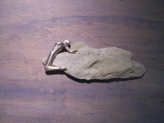 Originalgröße 117 x 60 cm, Größe Skulptur mit Stein 10 x 25 cm